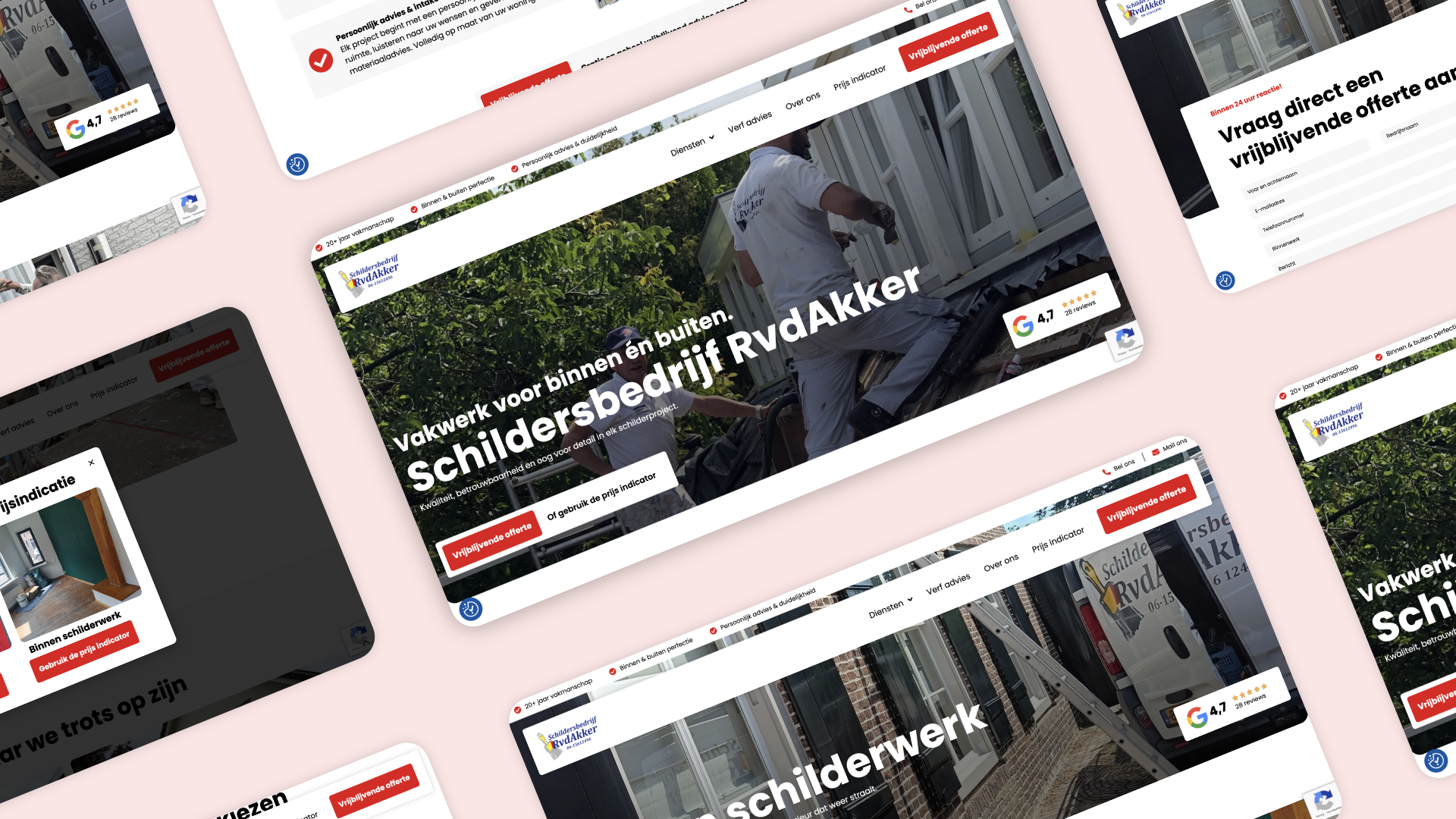 De bestaande website van Schildersbedrijf Rvd Akker was verouderd en bood onvoldoende overzicht. De klant wilde een professionele en moderne website die vertrouwen uitstraalt en bezoekers actief aanzet tot het aanvragen van een offerte.